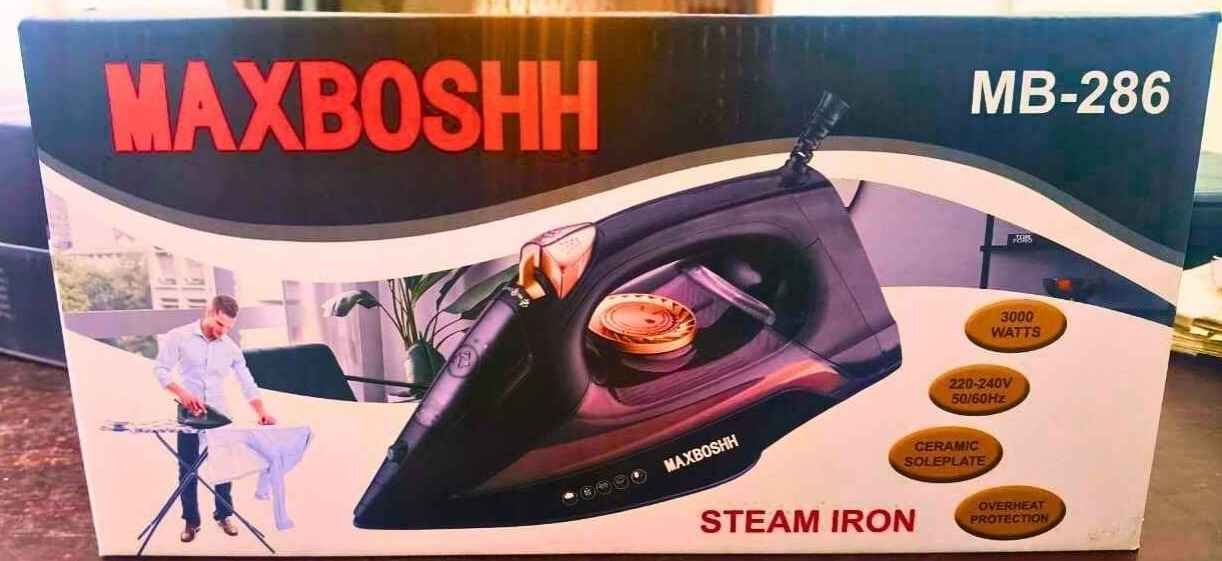 Make ironing faster, smoother, and more effective with the MaxBoshh MB-286 Steam Iron — a powerful and premium-quality appliance built for heavy-duty use. Featuring a 3000-watt motor, this iron heats up quickly and delivers powerful steam to remove even the most stubborn wrinkles with ease.