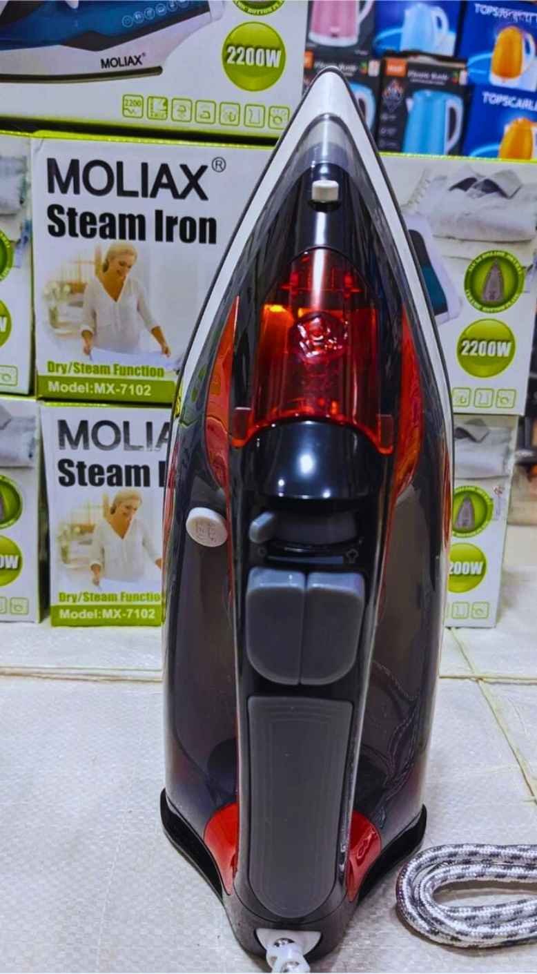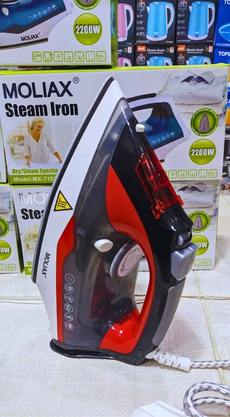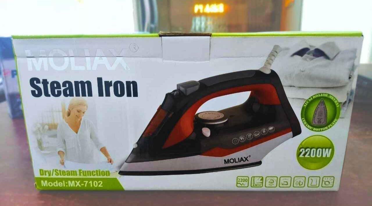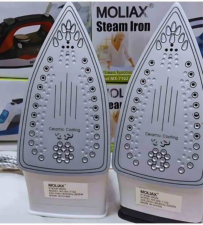 Upgrade your ironing routine with the Moliax MX-7102 Steam Iron, engineered for performance, safety, and ease of use. With a powerful 2200-watt motor, this iron heats up quickly and provides strong, continuous steam output to remove wrinkles efficiently from all types of fabrics.