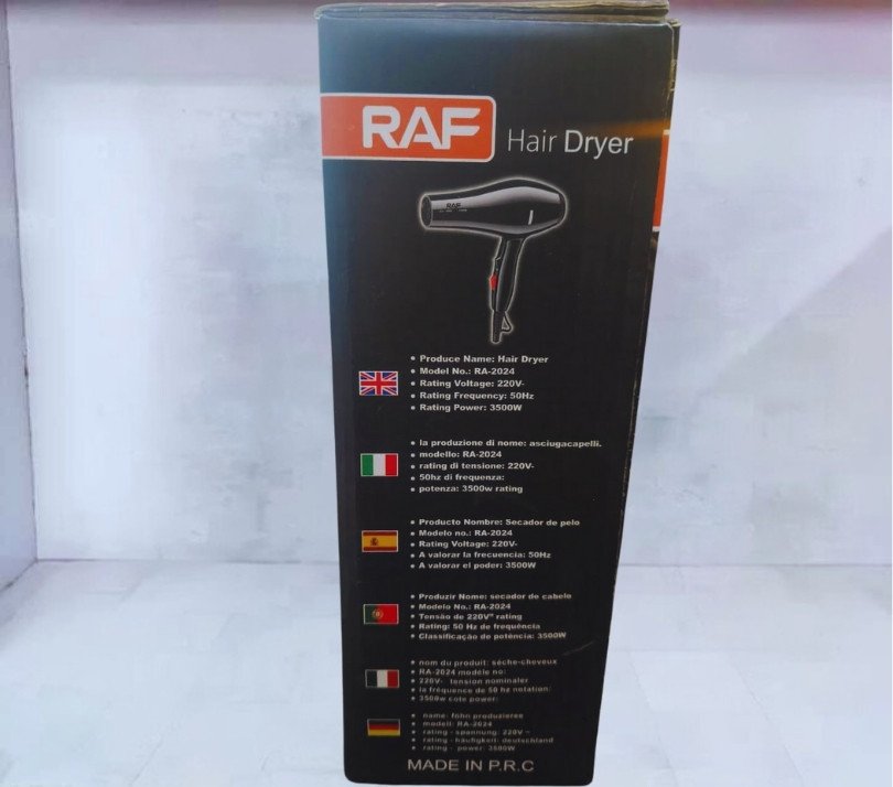 Ideal for both personal and professional use, the Raf 3500W Hair Dryer is your go-to tool for achieving sleek, frizz-free styles in minutes.